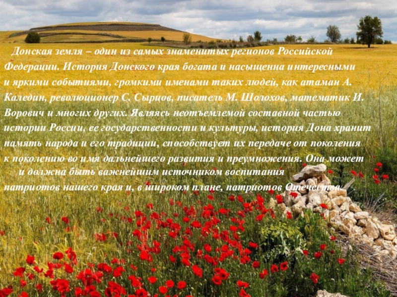 Слайд 3 Донская земля – один из самых знаменитых регионов Российской