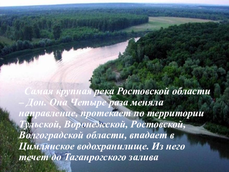 Слайд 9 Самая крупная река Ростовской области – Дон. Она