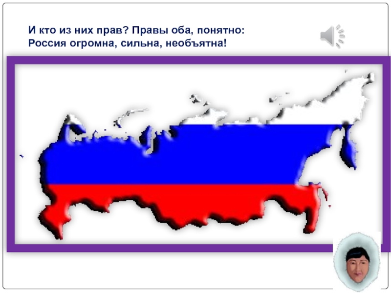 И кто из них прав? Правы оба, понятно:Россия огромна, сильна, необъятна!