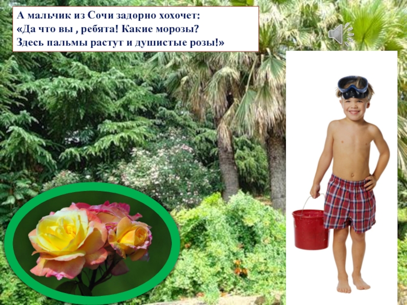 Слайд 6А мальчик из Сочи задорно хохочет: