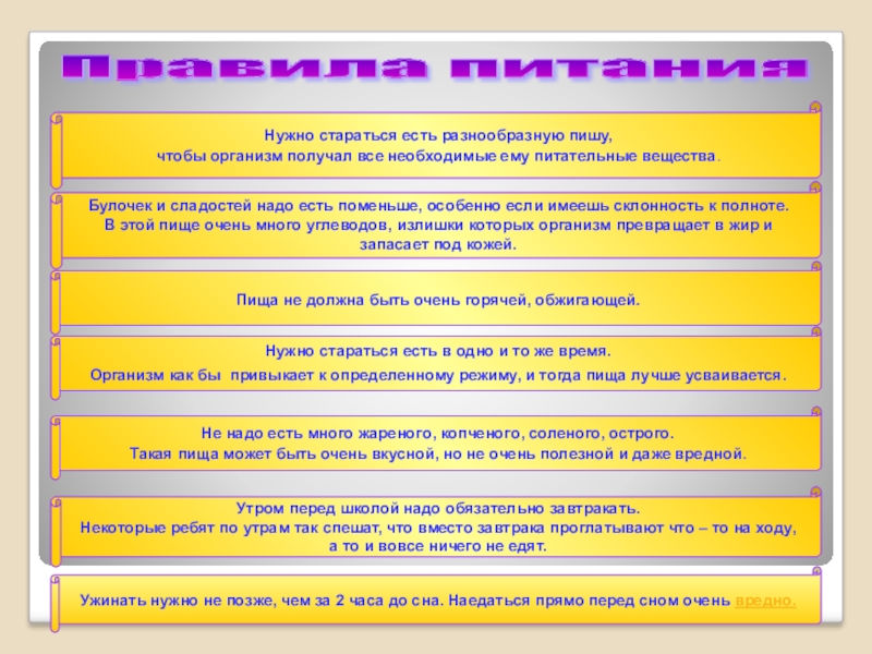 Пища не должна быть очень горячей, обжигающей.