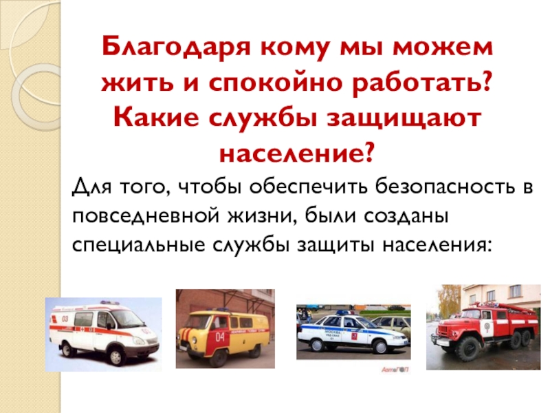 Для того, чтобы обеспечить безопасность в повседневной жизни, были созданы специальные службы защиты населения: