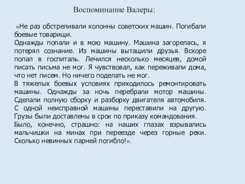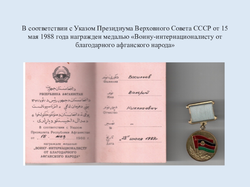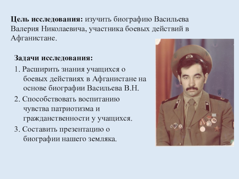 1. Расширить знания учащихся о боевых действиях в Афганистане на основе биографии Васильева В.Н.
