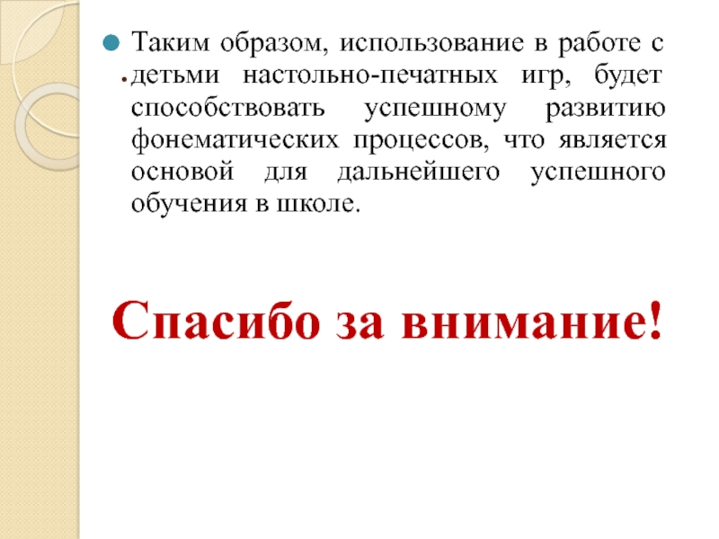 Таким образом, использование в работе с детьми настольно-печатных игр, будет способствовать