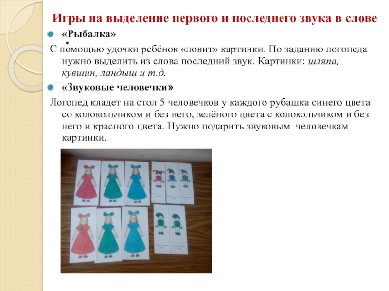 Логопед кладет на стол 5 человечков у каждого рубашка синего цвета со колокольчиком и без него, зелёного цвета с колокольчиком и без него и красного цвета. Нужно подарить звуковым человечкам картинки.