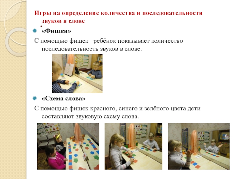 фишек ребёнок показывает количество последовательность звуков в слове.