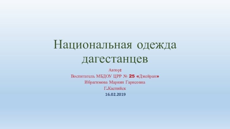 Национальная одежда  дагестанцевАвтор:Воспитатель МБДОУ ЦРР № 25 «Джейран»Ибрагимова Мариян Гарисовна Г.Каспийск 16.02.2019