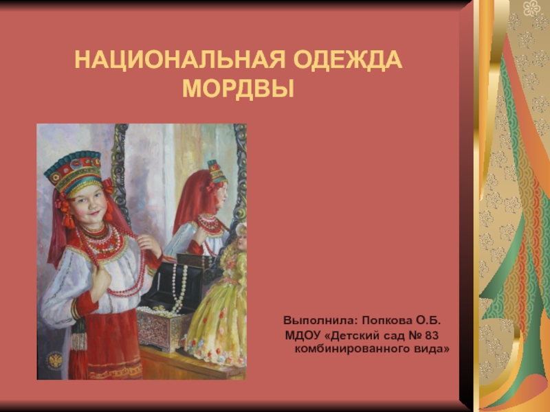 НАЦИОНАЛЬНАЯ ОДЕЖДА МОРДВЫВыполнила: Попкова О.Б.МДОУ «Детский сад № 83 комбинированного вида»