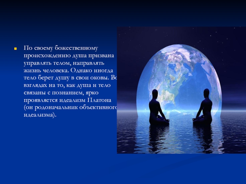 Слайд 5По своему божественному происхождению душа призвана управлять телом, направлять жизнь человека.
