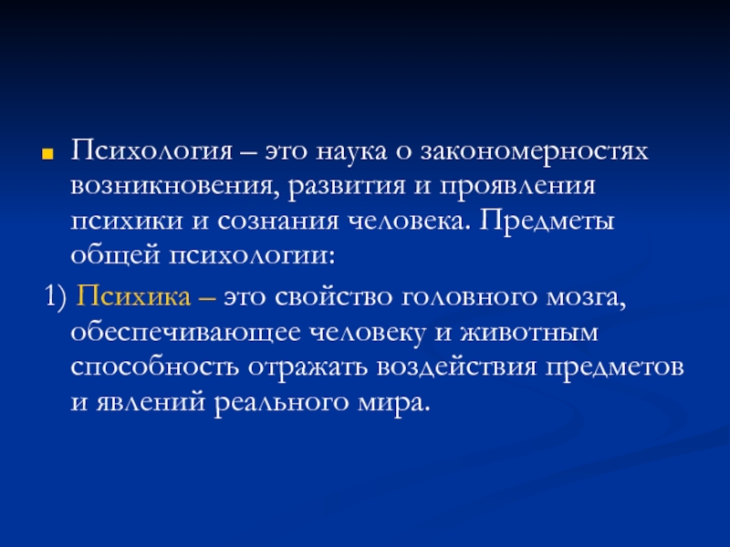 Психология – это наука о закономерностях возникновения, развития и проявления психики