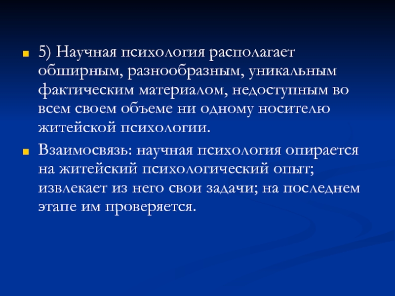 Слайд 135) Научная психология располагает обширным, разнообразным, уникальным фактическим материалом, недоступным во