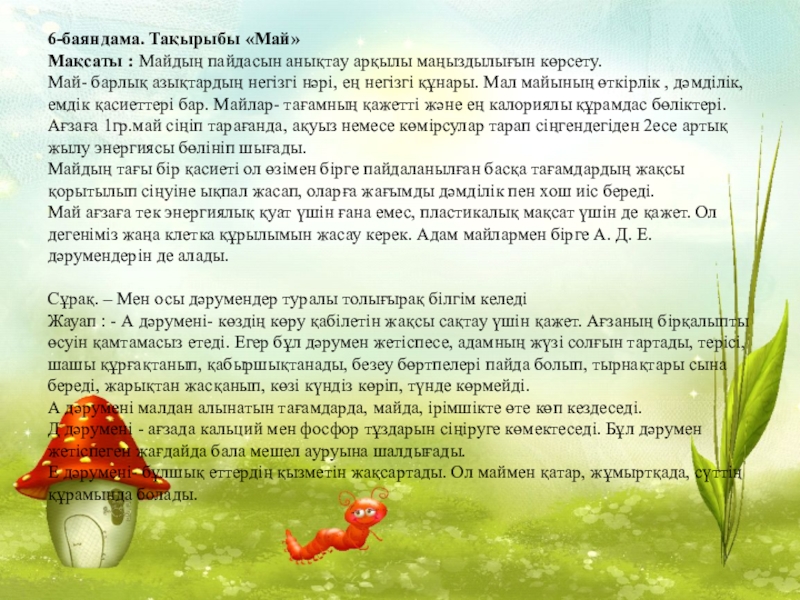 Слайд 216-баяндама. Тақырыбы «Май»