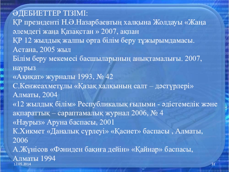 Слайд 31ӘДЕБИЕТТЕР ТІЗІМІ: