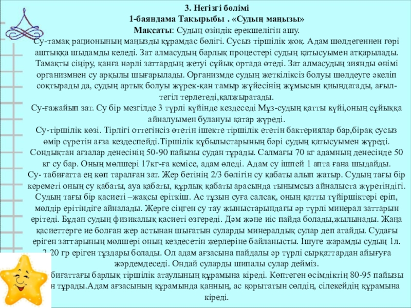 1-баяндама Тақырыбы . «Судың маңызы»