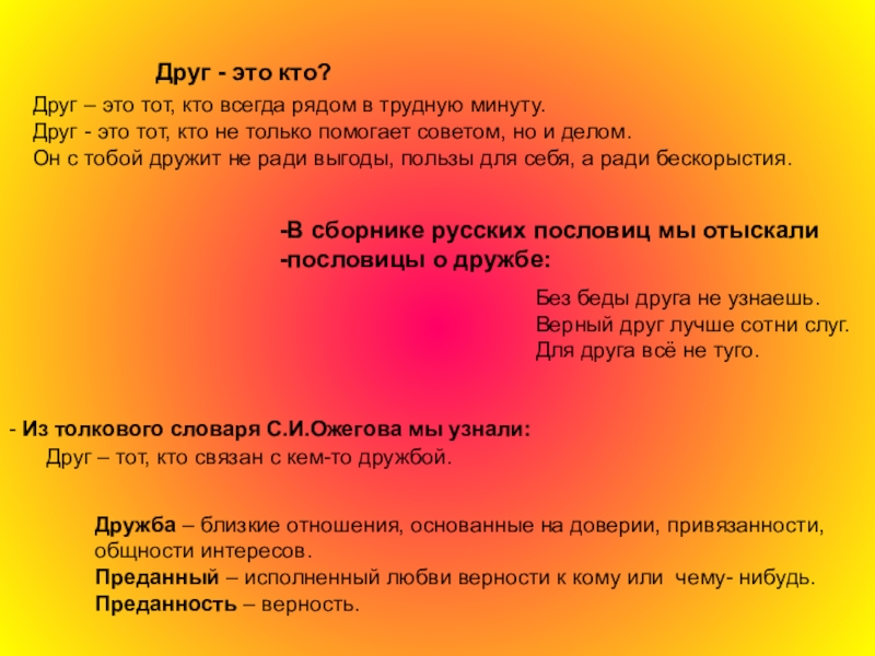- Из толкового словаря С.И.Ожегова мы узнали: