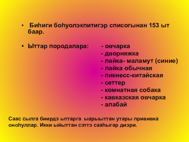 Биhиги боhуолэкпитигэр списогынан 153 ыт баар.
