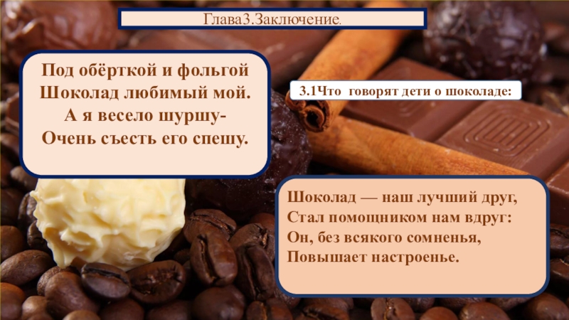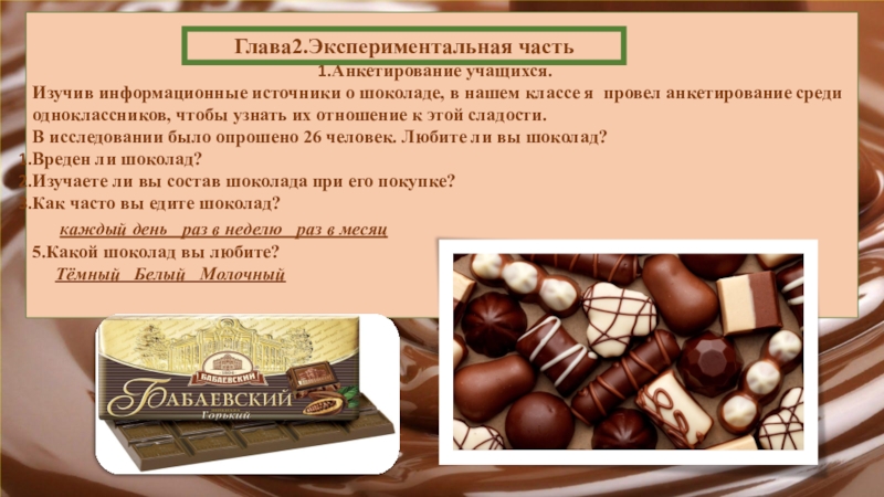 Изучив информационные источники о шоколаде, в нашем классе я провел