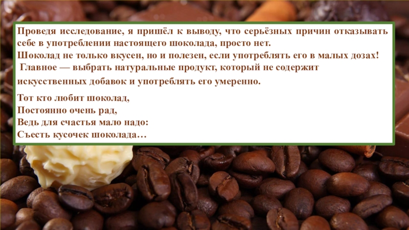 Слайд 21Проведя исследование, я пришёл к выводу, что серьёзных причин отказывать себе