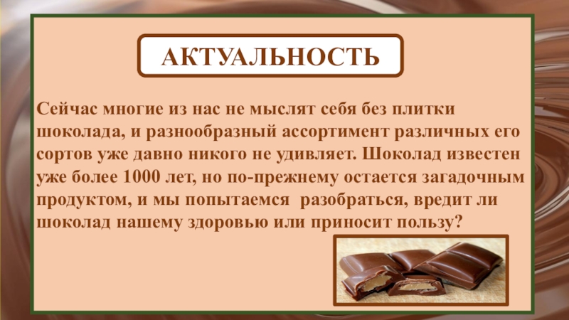 Слайд 2Сейчас многие из нас не мыслят себя без плитки шоколада, и