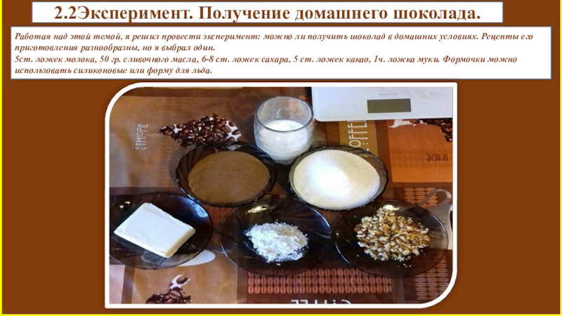 Слайд 142.2Эксперимент. Получение домашнего шоколада.