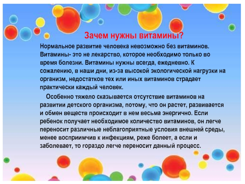 Нормальное развитие человека невозможно без витаминов. Витамины- это не