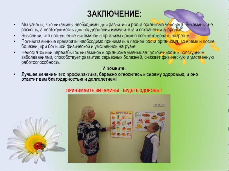 Мы узнали, что витамины необходимы для развития и роста организма человека.