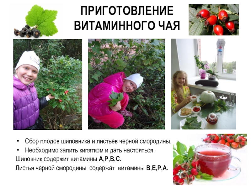 Сбор плодов шиповника и листьев черной смородины.
