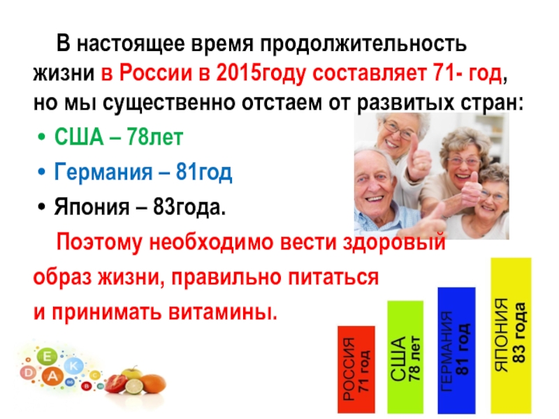 составляет 71- год, но мы существенно отстаем от развитых стран: