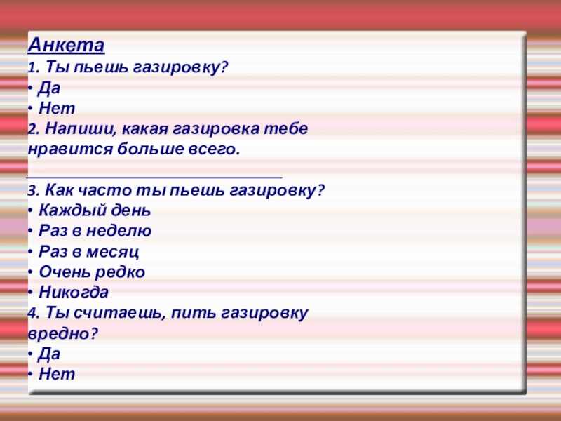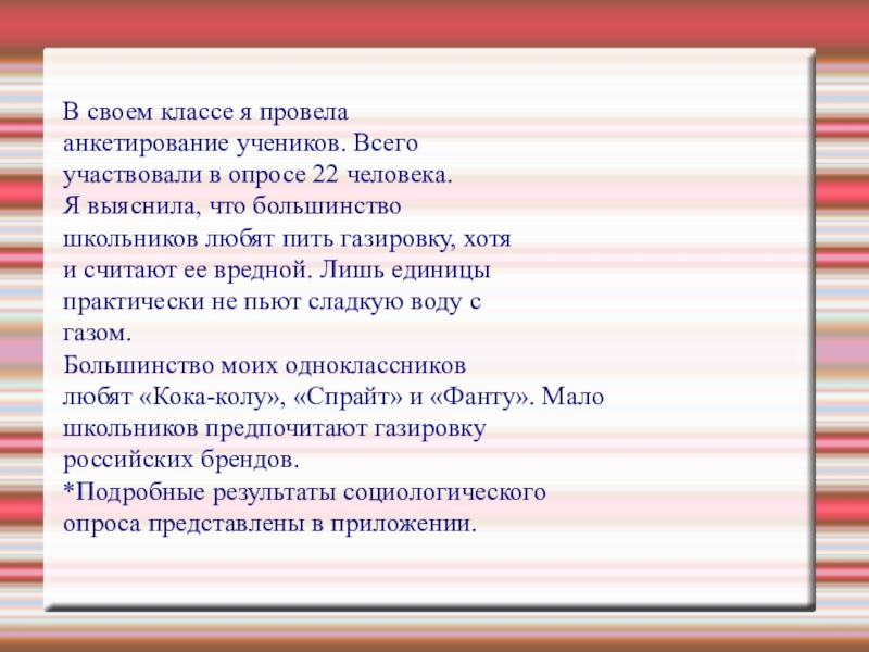 •Сладкие газированные напитки не утоляют жажду, хотя мы покупаем их именно для этого.
