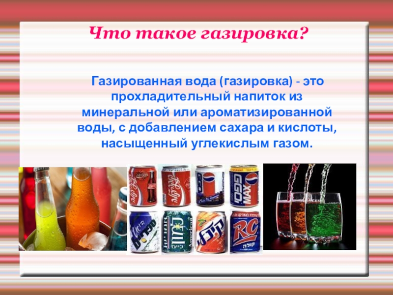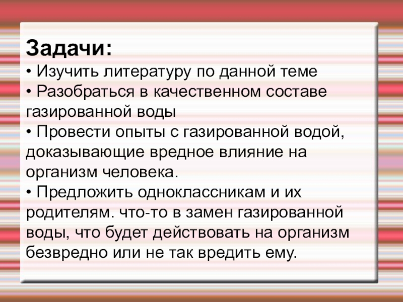 Изучить состав газированных напитков и выяснить влияние газированных напитков на организм