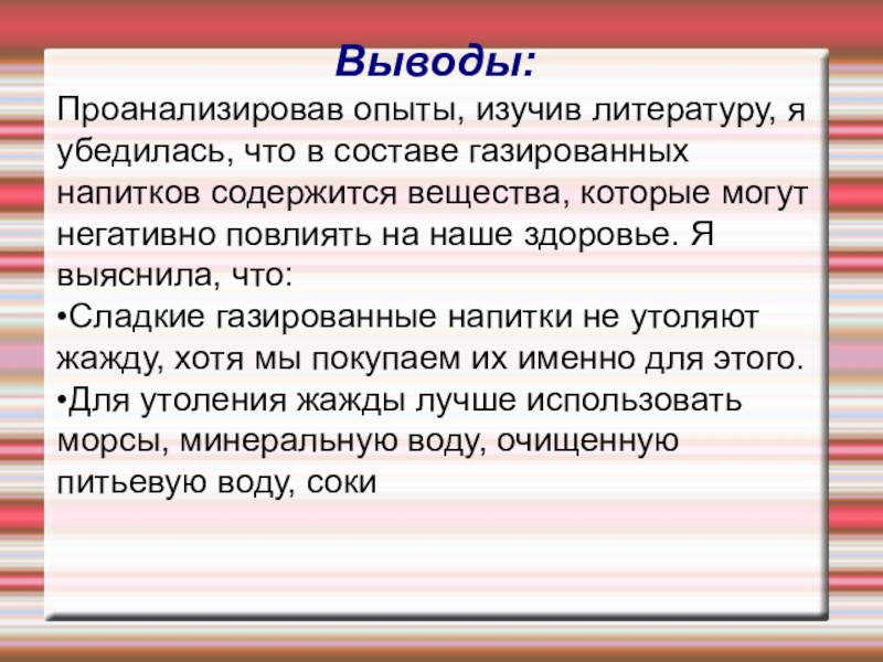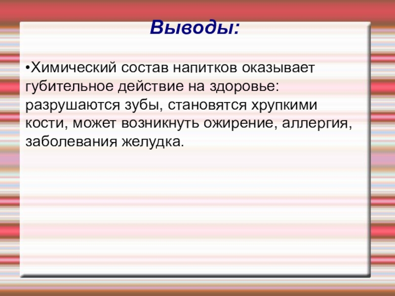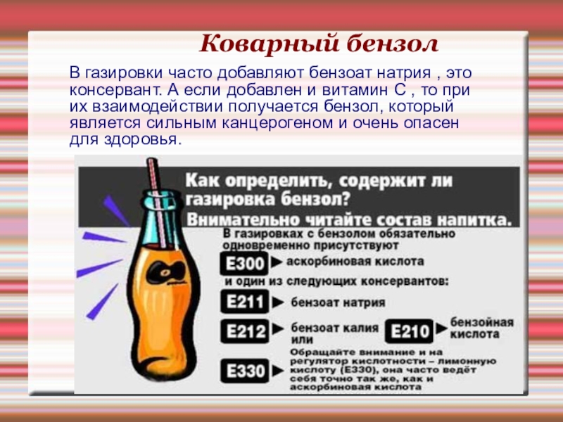 напитков содержится вещества, которые могут негативно повлиять на наше здоровье. Я выяснила, что: