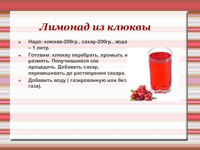 Надо: клюква-200гр., сахар-200гр., вода – 1 литр.
