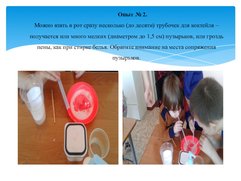 Слайд 10Опыт № 2. Можно взять в рот сразу несколько (до десяти) трубочек