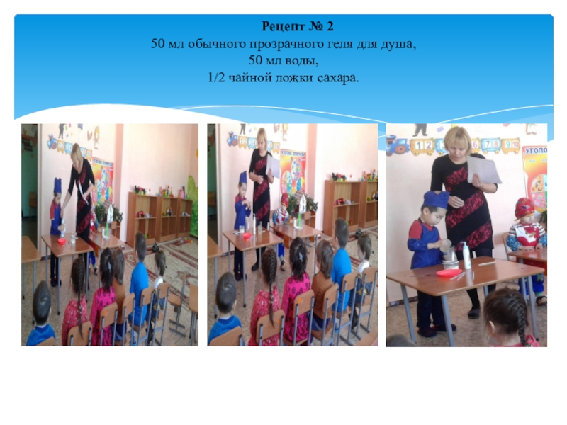 Слайд 6Рецепт № 2 50 мл обычного прозрачного геля для душа, 50 мл воды, 1/2