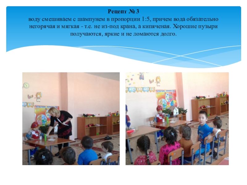 Слайд 7Рецепт № 3 воду смешиваем с шампунем в пропорции 1:5, причем вода