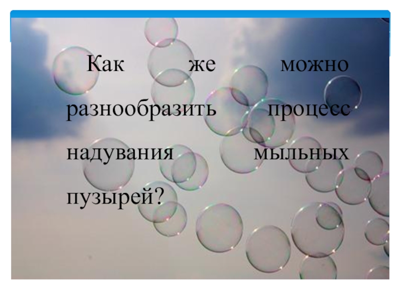 Слайд 8Как же можно разнообразить процесс надувания мыльных пузырей?