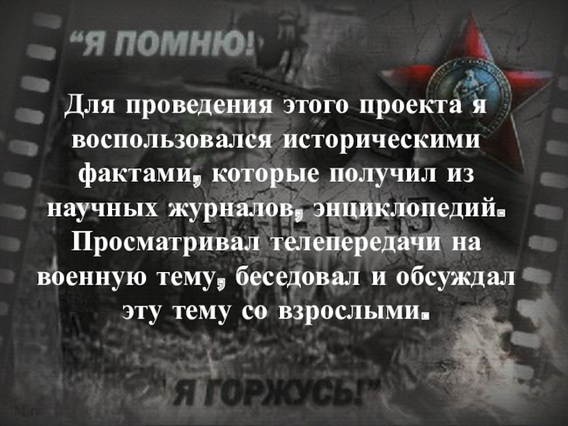 Слайд 5Для проведения этого проекта я воспользовался историческими фактами, которые получил из