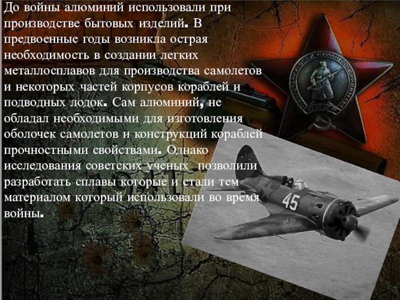 Слайд 17До войны алюминий использовали при производстве бытовых изделий. В предвоенные годы