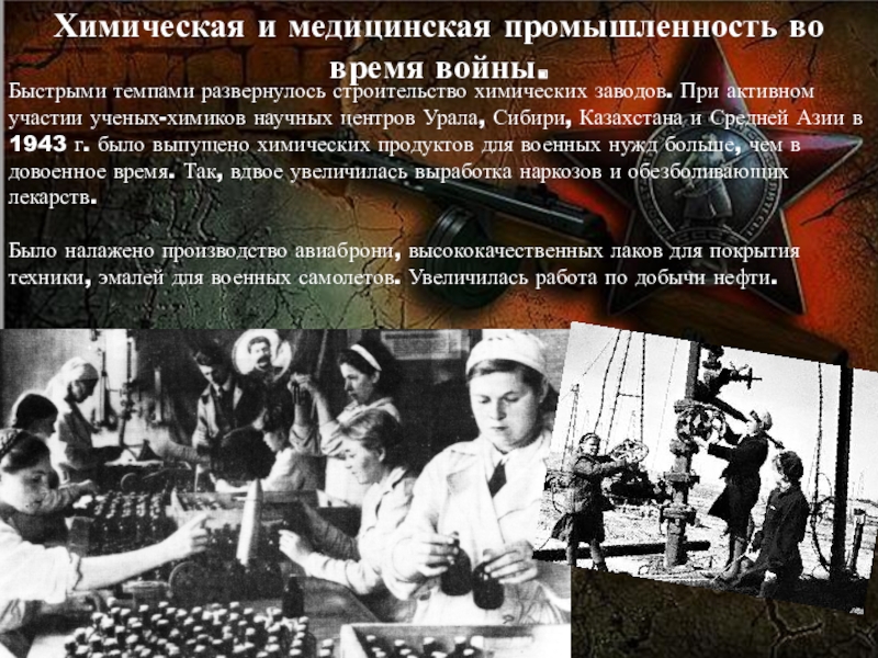 Слайд 11Химическая и медицинская промышленность во время войны.