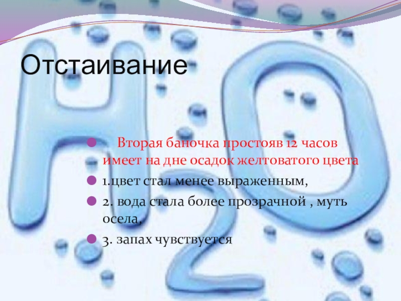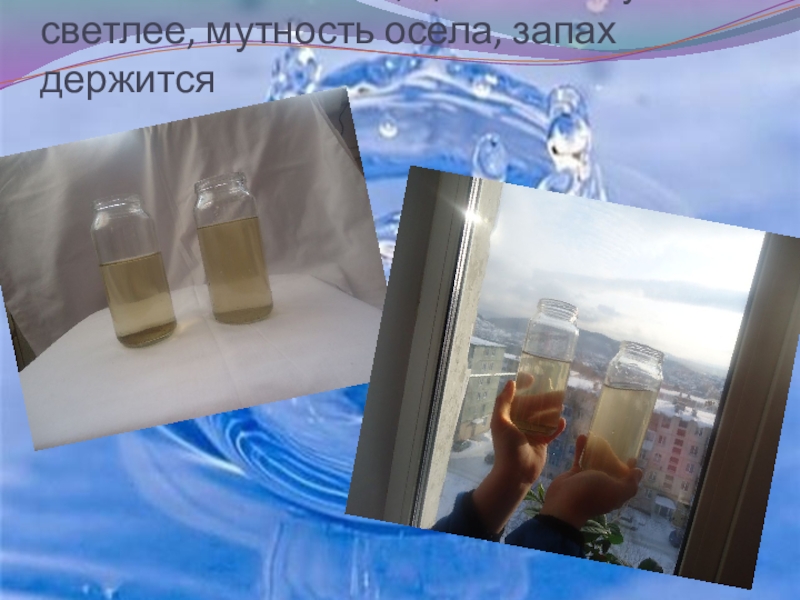 Слайд 14После отстаивания, цвет стал чуть светлее, мутность осела, запах держится