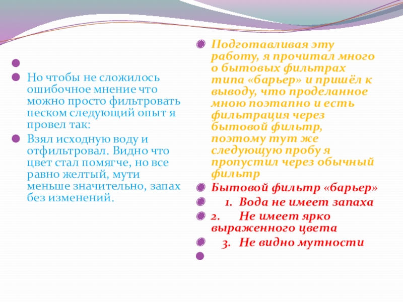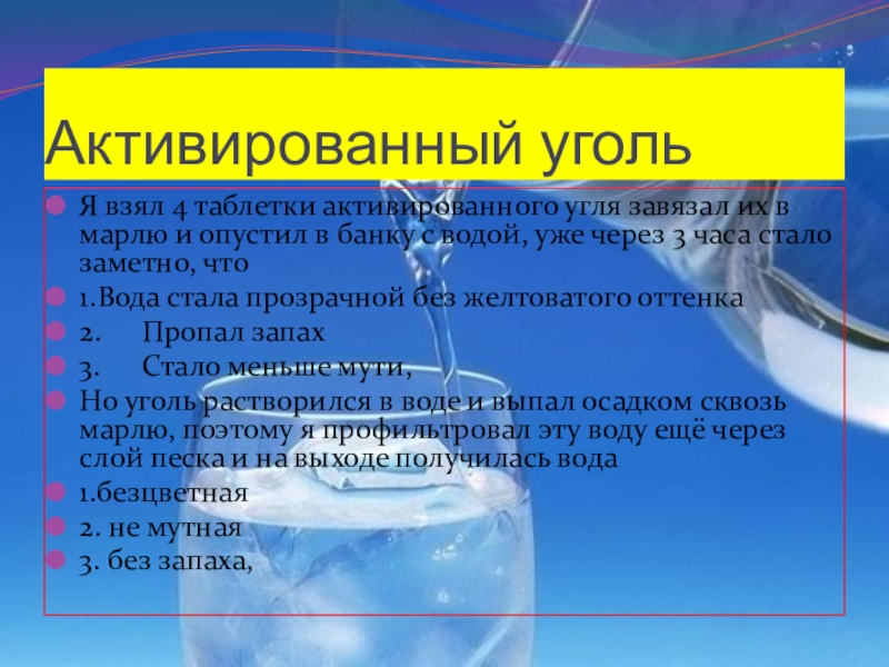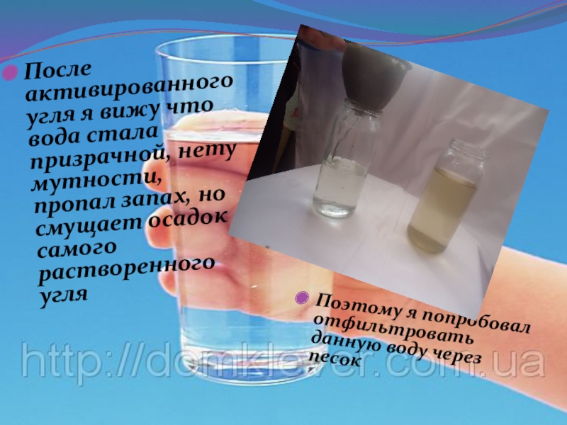 Слайд 20После активированного угля я вижу что вода стала призрачной, нету мутности,