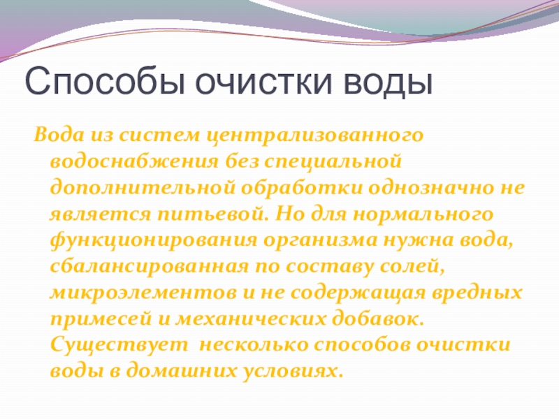 Слайд 1«Очистка воды в домашних условиях»