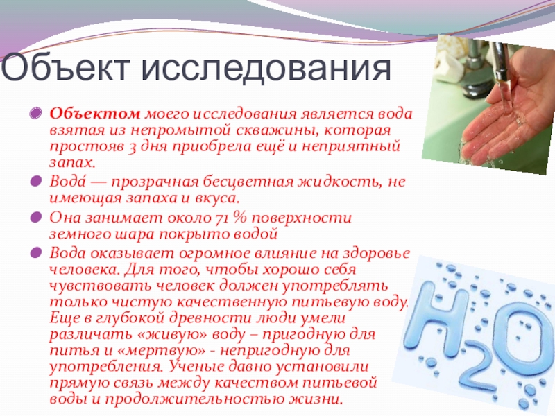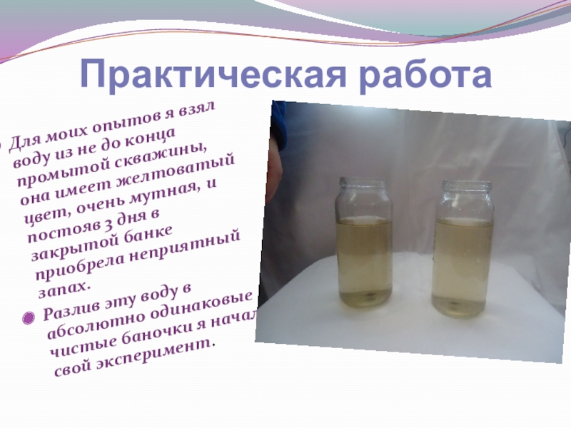 Объектом моего исследования является вода взятая из непромытой скважины,