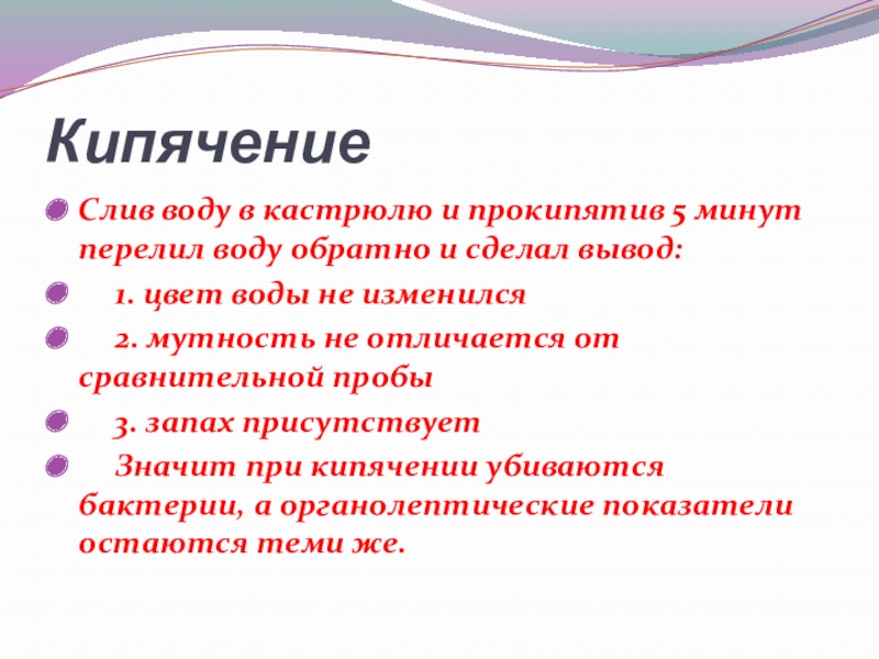 Значит при кипячении убиваются бактерии, а органолептические показатели остаются теми же.