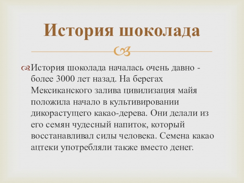 История шоколада