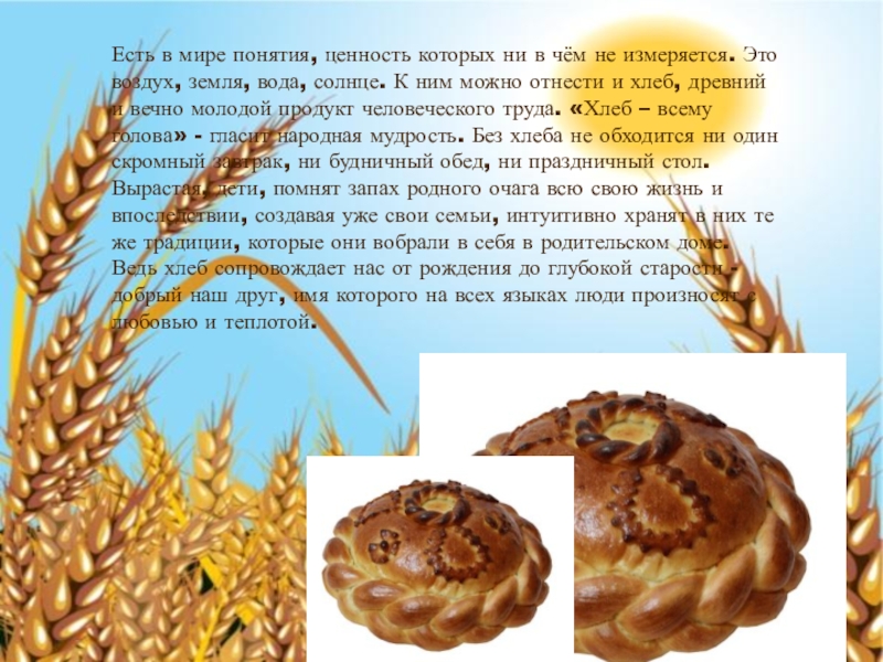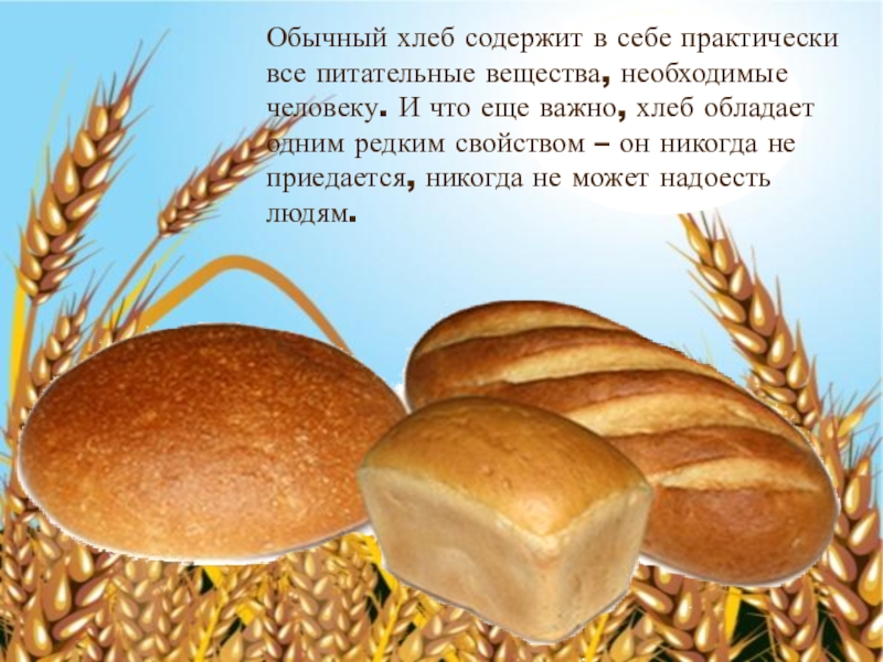 Обычный хлеб содержит в себе практически все питательные вещества, необходимые человеку. И что еще важно, хлеб обладает одним редким свойством – он никогда не приедается, никогда не может надоесть людям.