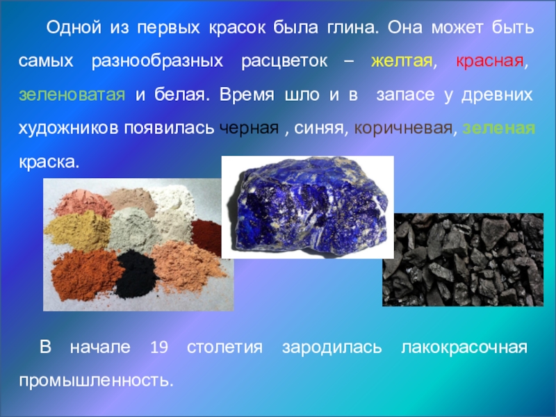 В начале 19 столетия зародилась лакокрасочная промышленность.
