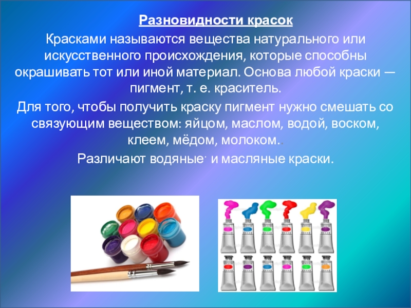 Красками называются вещества натурального или искусственного происхождения, которые способны