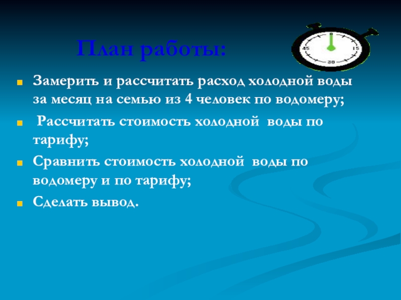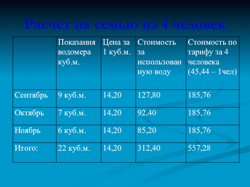 Замерить и рассчитать расход холодной воды за месяц на семью