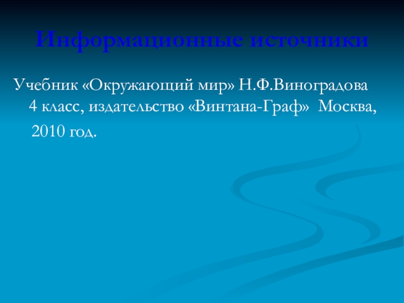 Учебник «Окружающий мир» Н.Ф.Виноградова 4 класс, издательство «Винтана-Граф» Москва,
